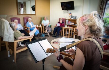 Amanda facilitated movement sessions, choreographing and co-creating accessible seated dances inspired by traditional English folk dance. The participants were active contributors to the sessions offered opportunities for social connection and creative expression while bringing new life to forgotten local folk traditions.