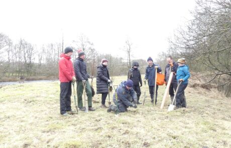 Park End is farmed by Peter Raine, a tenant of Strathmore Estate. Peter has worked with the North Pennines National Landscape team for a number of years, and has had several meadows restored and enhanced as well as acting as a green hay donor. The tree planting site, alongside the River Tees, is a mosaic of rough grassland, trees and scrub, and more species-rich grassland areas. With funding from the Tees-Swale programme, an old fence line has been replaced to allow improved management of the species-rich grassland section. The tree planting is focussed at either end of this area, away from any diverse grassland. The aim is to plant a mixture of tree and scrub species with approximately 80-90 whips. This will extend the wooded area, improve the structural diversity by adding more understorey, and improve the age structure as there is currently little regeneration due to pressure from rabbits and, possibly, deer.